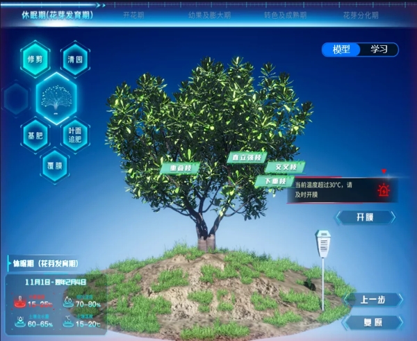 ?????? 運(yùn)用數(shù)字孿生技術(shù)融合楊梅科學(xué)化生產(chǎn),利用3D建模、全景拍攝技術(shù)和神經(jīng)網(wǎng)絡(luò)、大數(shù)據(jù)等技術(shù)結(jié)合,搭建楊梅“孿生”一棵樹(shù)。通過(guò)孿生一棵樹(shù)將數(shù)字模型與經(jīng)驗(yàn)數(shù)據(jù)進(jìn)行匹配、孿生模型與應(yīng)用培訓(xùn)進(jìn)行匹配、物聯(lián)感知與技術(shù)指導(dǎo)進(jìn)行匹配、業(yè)務(wù)服務(wù)與科學(xué)管理進(jìn)行匹配,結(jié)合“e蘭茗果”掌上應(yīng)用,實(shí)時(shí)指導(dǎo)梅農(nóng)剪枝、除草、打藥、養(yǎng)護(hù)等農(nóng)事行為。
