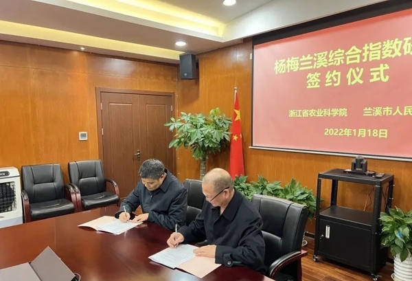 ?????? 省農(nóng)科院副院長(zhǎng)戚行江與蘭溪市人民政府副市長(zhǎng)陳玉祥簽訂《簽訂楊梅蘭溪綜合指數(shù)研究協(xié)議》,共同加快建立蘭溪楊梅綜合指數(shù)的評(píng)價(jià)體系,推動(dòng)楊梅產(chǎn)業(yè)數(shù)字化發(fā)展、智能化管理。