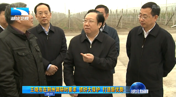 2016年11月,湖北省委副書記、代省長王曉東在荊州市市委書記李新華、市長楊智等領(lǐng)導(dǎo)陪同下蒞臨金秋農(nóng)業(yè)智能化葡萄示范基地調(diào)研現(xiàn)代農(nóng)業(yè)發(fā)展情況。饒有興趣的參觀了"智能化中心"水肥一體化設(shè)施,了解托普云農(nóng)水肥一體化的精準(zhǔn)生產(chǎn)過程。
