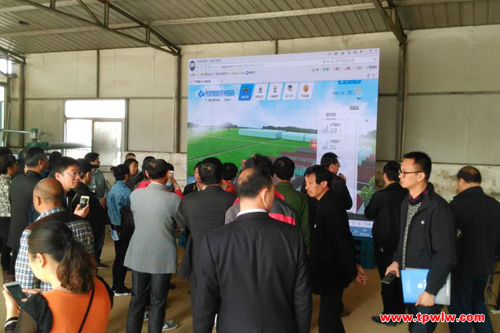 圖為:交流會現(xiàn)場朱旭華副總經理為大家講解演示“托普智能育秧系統(tǒng)”