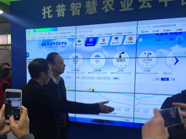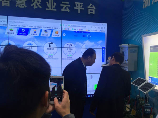 11月26日,浙江省人大常委會黨組書記、副主任茅臨生參觀托普云農(nóng)展位。茅臨生饒有興致地參觀了托普云農(nóng)展位的各區(qū)域,詳細詢問了托普云農(nóng)農(nóng)業(yè)“四情”監(jiān)控系統(tǒng)、設施農(nóng)業(yè)監(jiān)控系統(tǒng)、水肥一體化監(jiān)控系統(tǒng)、智慧農(nóng)業(yè)云平臺等系統(tǒng)平臺的相關工作原理和實施效果。茅臨生還來到儀器展示區(qū),由托普云農(nóng)展區(qū)負責人為其介紹了傳感器、土壤墑情監(jiān)控系統(tǒng)硬件、農(nóng)藥殘留速測儀等智能硬件設備。這次參觀,充分感受到茅臨生對浙江智慧農(nóng)業(yè)發(fā)展的關注和支持;鼓舞了托普云農(nóng)員工的士氣,激發(fā)了大家的工作熱情,托普云農(nóng)將繼續(xù)為浙江省現(xiàn)代農(nóng)業(yè)建設貢獻力量。