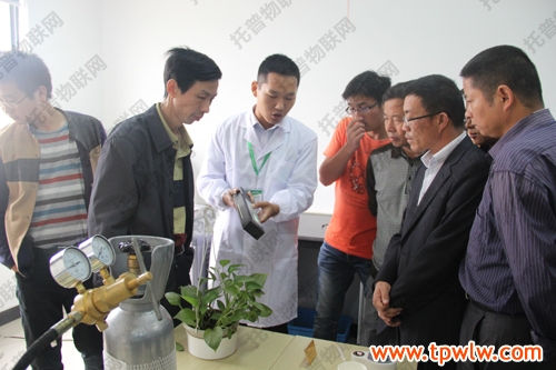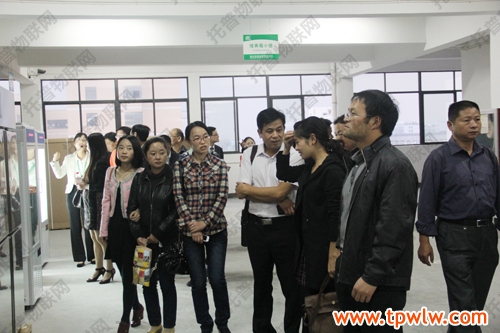 圖為:參會(huì)嘉賓在樣品室聽(tīng)取托普農(nóng)業(yè)物聯(lián)網(wǎng)介紹,并表現(xiàn)出了對(duì)該系統(tǒng)的濃厚興趣