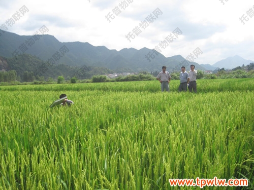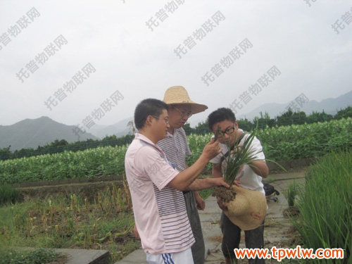 圖為:2012年8月10日,省市專家到淳安縣汾口鎮(zhèn)百畝畈村病蟲監(jiān)測區(qū)采集南方型稻病毒病樣
