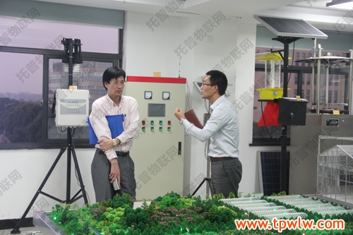 圖為:托普儀器技術(shù)員講解農(nóng)業(yè)物聯(lián)網(wǎng)應(yīng)用