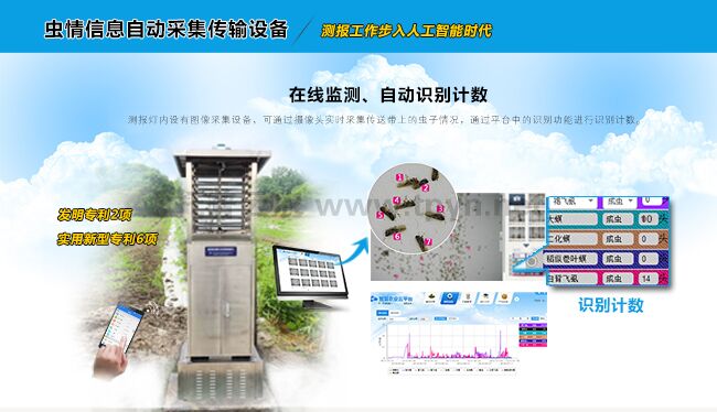 智慧型蟲情測(cè)報(bào)燈是新一代圖像識(shí)別式蟲情測(cè)報(bào)工具,可全天候工作。在無(wú)人監(jiān)管的情況下,系統(tǒng)運(yùn)用物聯(lián)網(wǎng)、互聯(lián)網(wǎng)、人工智能、大數(shù)據(jù)等技術(shù)自動(dòng)采集、傳輸、分析、存儲(chǔ)和展示蟲情數(shù)據(jù),并提供自動(dòng)化和智能化的分析和管理決策數(shù)據(jù)。通過(guò)電腦、手機(jī)等終端設(shè)備,便可對(duì)作物病蟲害實(shí)行遠(yuǎn)程實(shí)時(shí)監(jiān)測(cè)、在線識(shí)別、自動(dòng)計(jì)數(shù),是植保人員的“千里眼”和“聽診器”。智慧型蟲情測(cè)報(bào)燈亦是植物保護(hù)提升工程的重要智能裝備,它與農(nóng)作物病蟲害實(shí)時(shí)監(jiān)控物聯(lián)網(wǎng)設(shè)備、蟲情信息自動(dòng)采集傳輸設(shè)備、農(nóng)田小氣候自動(dòng)采集傳輸設(shè)備、農(nóng)作物病菌孢子自動(dòng)捕捉培養(yǎng)系統(tǒng)等設(shè)備配套使用,是農(nóng)作物病蟲疫情監(jiān)測(cè)點(diǎn)建設(shè)中必不可少的智能測(cè)報(bào)工具。