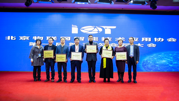 圖:托普云農(nóng)副總經(jīng)理(左三)帶公司領(lǐng)取北京物聯(lián)網(wǎng)智能技術(shù)應(yīng)用大會(huì)會(huì)員證書(shū)