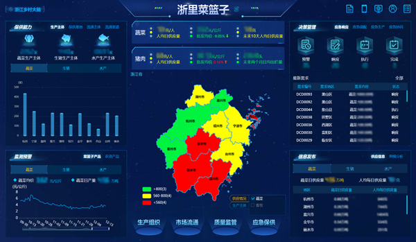 作為首個(gè)菜籃子保供數(shù)字化平臺(tái),“浙里菜籃子”構(gòu)建了“平時(shí)+戰(zhàn)時(shí)”“常態(tài)+應(yīng)急”“政府+市場(chǎng)”的保供機(jī)制。在“平時(shí)常態(tài)”下,圍繞生產(chǎn)和流通兩端主體,做好生產(chǎn)服務(wù)、政策支持、動(dòng)態(tài)監(jiān)測(cè)、質(zhì)量監(jiān)管和市場(chǎng)監(jiān)管,促進(jìn)產(chǎn)銷有機(jī)對(duì)接,形成生產(chǎn)保供、質(zhì)量監(jiān)管和市場(chǎng)保供三大能力。在“戰(zhàn)時(shí)應(yīng)急”下,按照監(jiān)測(cè)預(yù)警模型,在出現(xiàn)異動(dòng)時(shí),緊急啟動(dòng)應(yīng)急預(yù)案,一是快速掌握應(yīng)急需求;二是根據(jù)需求,迅速組織本地保供基地開(kāi)展應(yīng)急生產(chǎn)、組織外埠保供基地開(kāi)展應(yīng)急調(diào)運(yùn);三是把儲(chǔ)備產(chǎn)品、物資,生產(chǎn)出來(lái)的產(chǎn)品、外埠調(diào)運(yùn)的產(chǎn)品進(jìn)行應(yīng)急配送,確保短期內(nèi)送到居民手中;同時(shí),及時(shí)發(fā)布推送保供權(quán)威信息,合理引導(dǎo)輿論導(dǎo)向和大眾預(yù)期,讓老百姓心里有數(shù),心中不慌。
