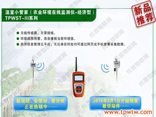 - 新產(chǎn)品上市通知——經(jīng)濟(jì)型農(nóng)業(yè)環(huán)境在線監(jiān)測(cè)儀發(fā)表日期:2015-03-27 來(lái)源:托普云農(nóng) 瀏覽次數(shù):4592次