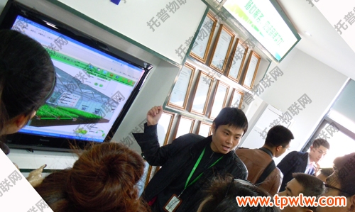 圖為:托普儀器技術(shù)人員為參觀者講解物聯(lián)網(wǎng)知識(shí)