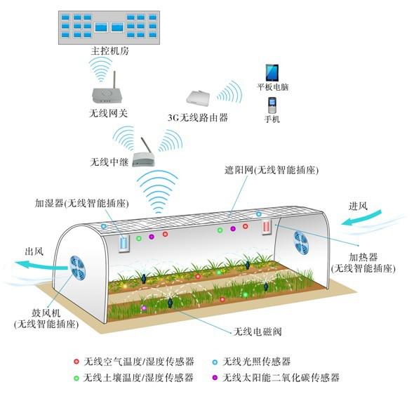 3)設(shè)備控制系統(tǒng):通風(fēng),遮陽;加濕,無線智能插座