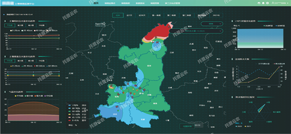 土壤墑情監(jiān)測:包括實(shí)時數(shù)據(jù)采集、數(shù)據(jù)在線分析、任務(wù)管理、苗情監(jiān)測和遙感分析。傳感器采集實(shí)時數(shù)據(jù),以列表和圖表形式展現(xiàn),包括土壤含水量和土壤溫度、氣象數(shù)據(jù)、種植數(shù)據(jù)和專題圖。所有傳感器采集的數(shù)據(jù)按時間以列表形式展現(xiàn),一目了然,支持導(dǎo)出Excel格式。